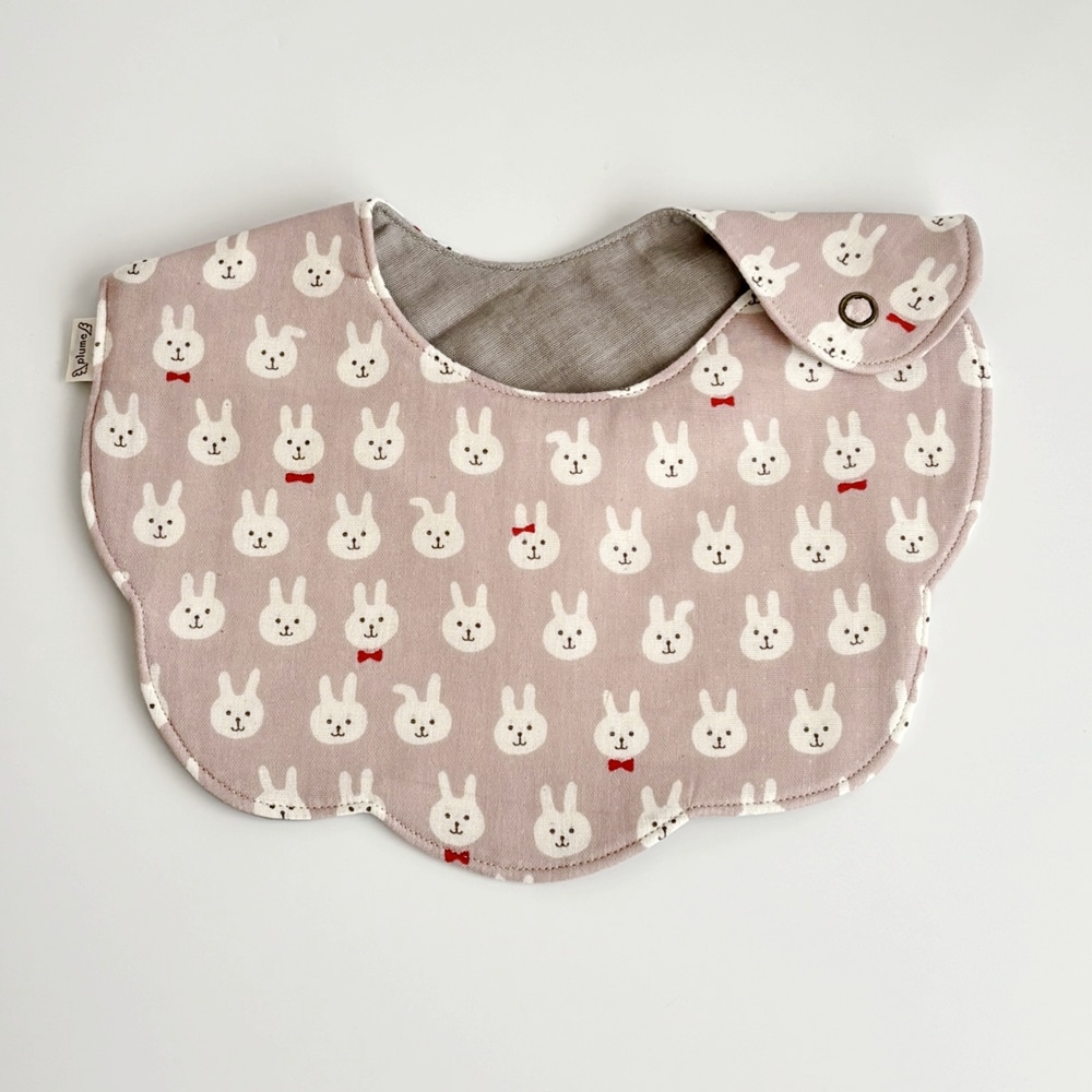 表布は優しいくすみピンク地にうさぎ柄。蝶ネクタイがかわいくおめかし感。
