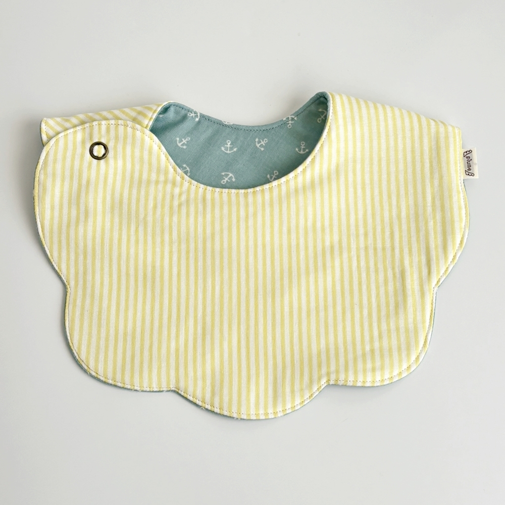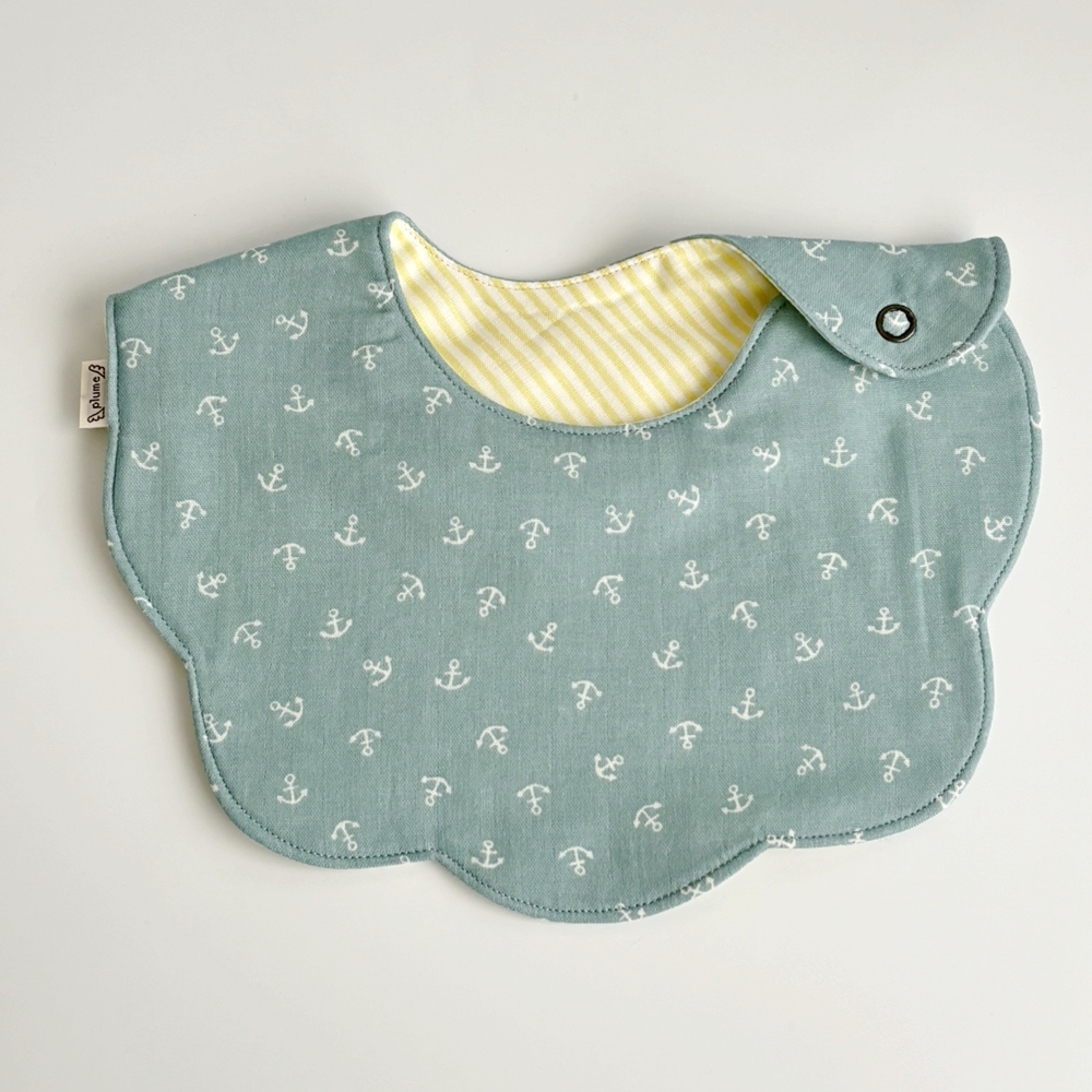 シンプルで使いやすいリバーシブルです。表も裏も使いたくなる、かわいい組合せのプルームスタイ。ぜひお試しください。